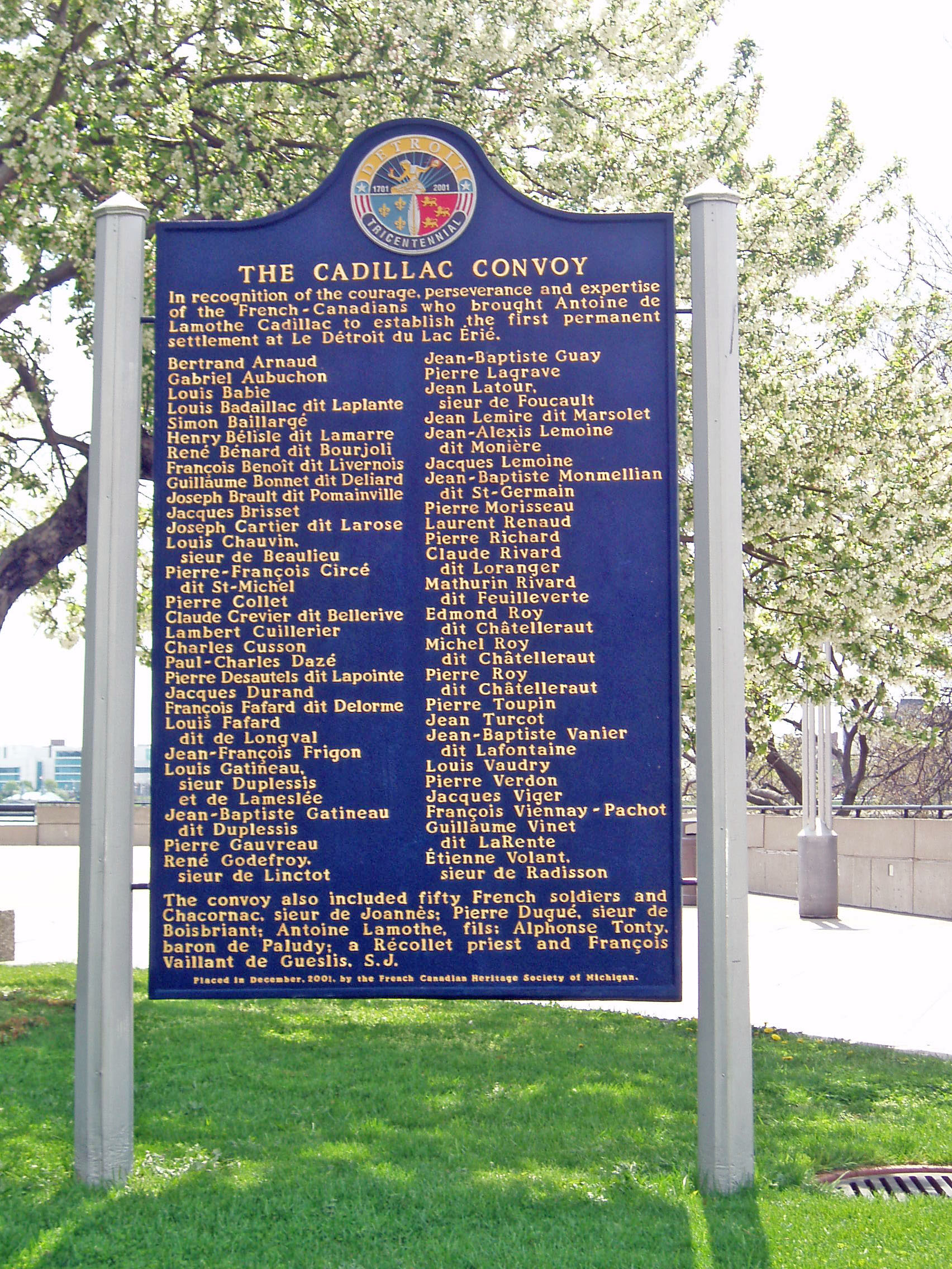 I have often wondered what is the most accurate rendering of Cadillac’s real name. Again, there are many uncertainties and I have no expertise in how names were used in late Medieval France. He was born Antoine Laumet. There is nothing in that name to suggest a high social status. It is possible that Cadillac changed and added to his name to imply that his origins were not so humble. When he married Marie-Thérèse Guyon, he signed his name as Antoine de la Mothe, sieur de Cadillac, son of Jean de la Moth, sieur de Cadillac de Launay et de Semontel, and Jeanne de Malefant. That is, he altered his surname and added the quasi-title, lord of Cadillac, which was a location near his birthplace. Apparently, once he was married, he called himself Cadillac. Perhaps much more has been written about this.